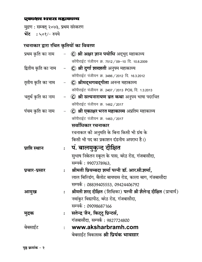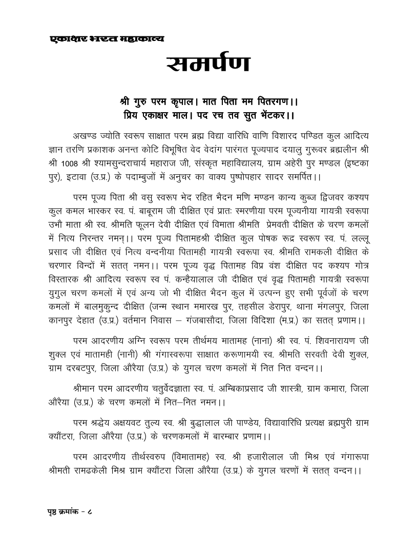 A,dk{kj Hkjr egkdkO;A